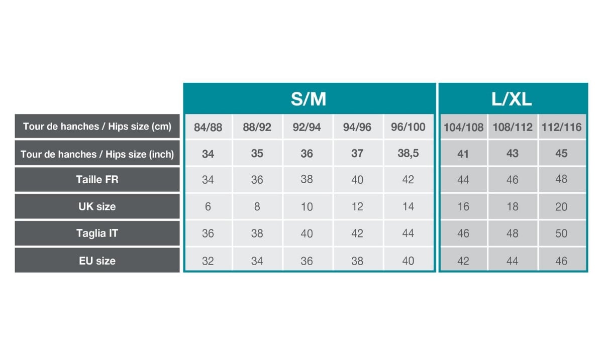 Disponibile** in S/M o L/XL,** trova la Dream Belt giusta per te usando la guida alle taglie. È semplice, misurate la vostra taglia dei fianchi, aggiungete la vostra taglia dei pantaloni e scoprite quale taglia vi sta bene nella tabella allegata.