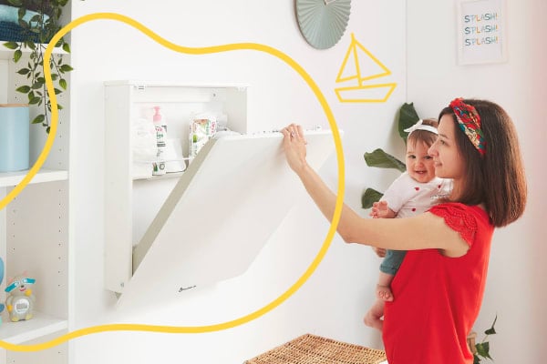 Pratico, il fasciatoio Plouf viene consegnato già montato e può essere fissato al muro in modo facile e sicuro.
