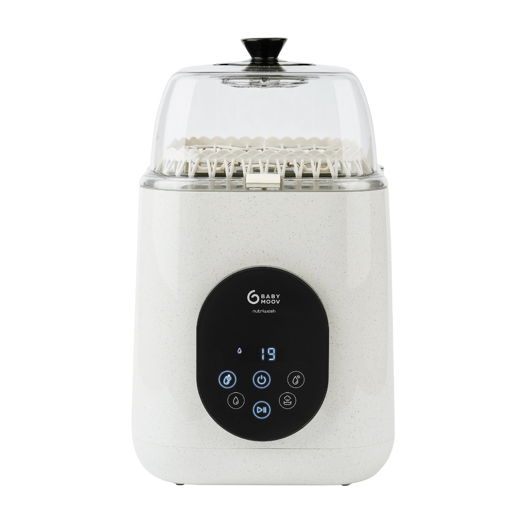 Quando ogni minuto è prezioso, NutriWash diventa l’alleato ideale. Lava, sterilizza, asciuga e conserva fino a 4 biberon e accessori in un solo ciclo, garantendo igiene perfetta senza sforzo. Con 11 programmi e touchscreen intuitivo, puoi scegliere il ciclo più adatto alle tue esigenze, incluso il programma rapido da 19 minuti.