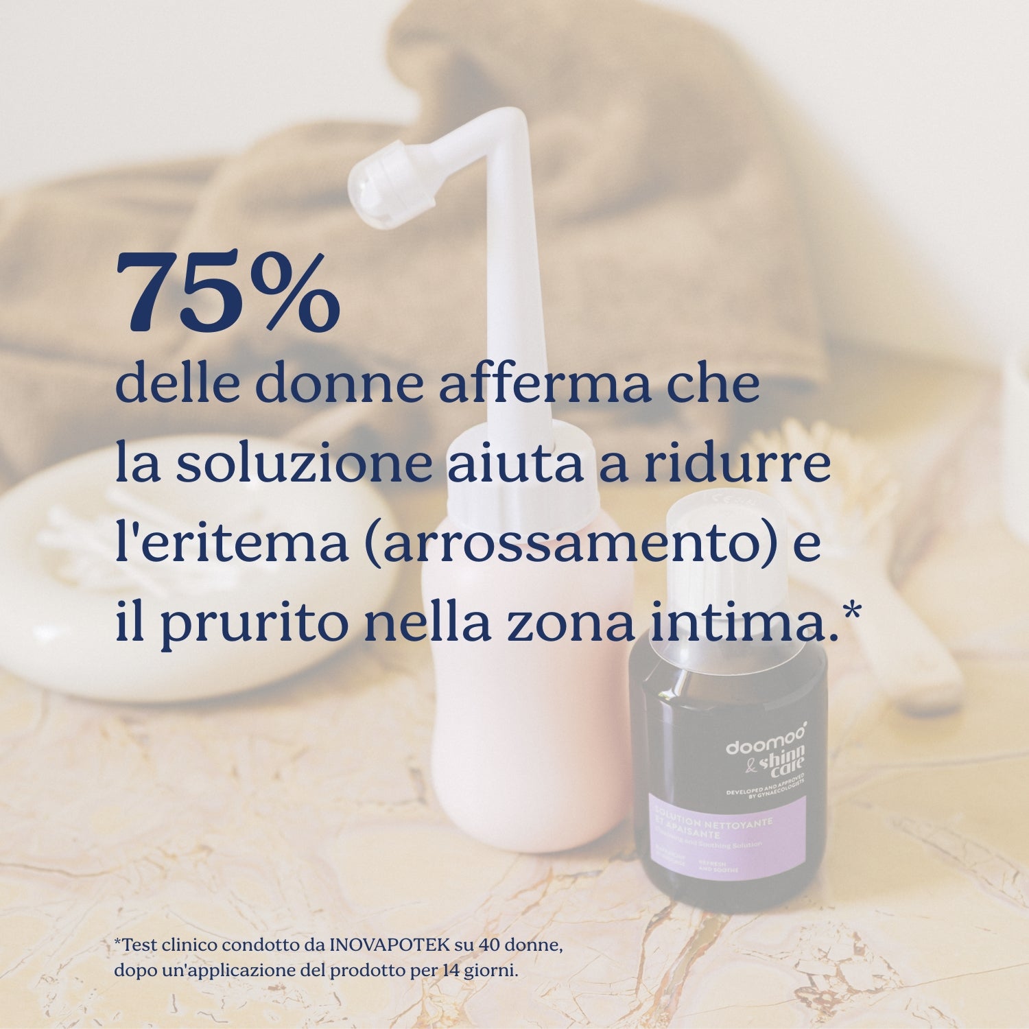 1. Utilizzare il tappo dosatore per diluire 10 ml di soluzione nei 300 ml di acqua tiepida della doccia intima.